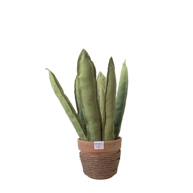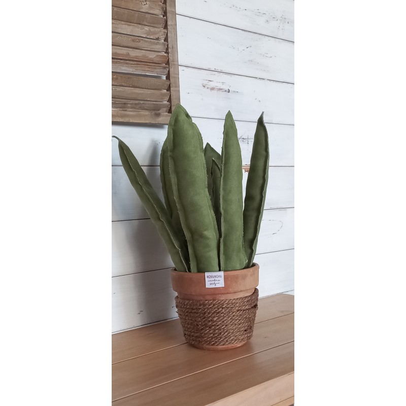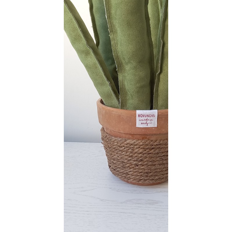 Agave in tessuto scamosciato con vaso in terracotta grezzo, da qui il nome "Grasta" e corda intrecciata.