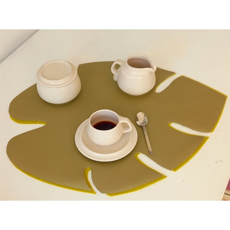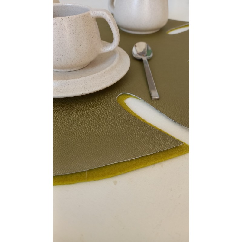 Tovagliette in Ecopelle verde oliva con base in feltro verde